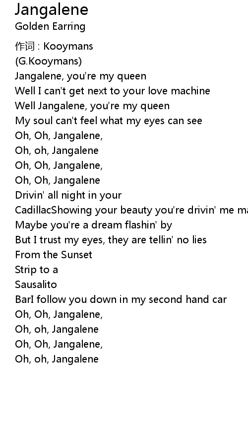 | Jangalene, you' re my queen | |