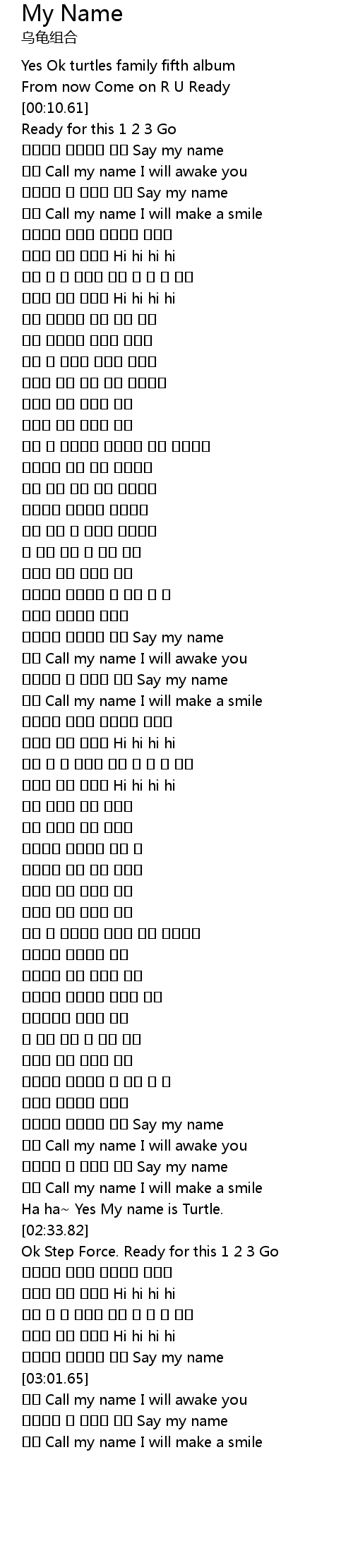 | [02:29.16] | Ha ha Yes My name is Turtle. |