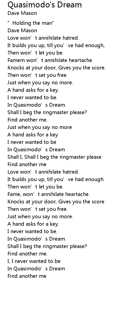 | [00:53.00] | In Quasimodo’s Dream. |