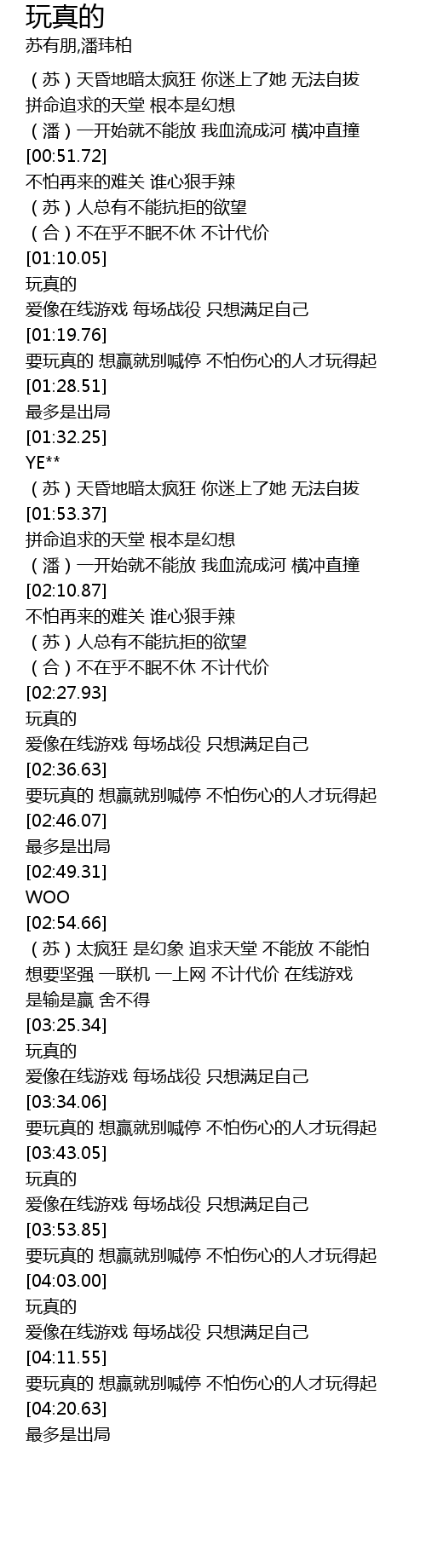 | [04:03.63] | 玩真的 |