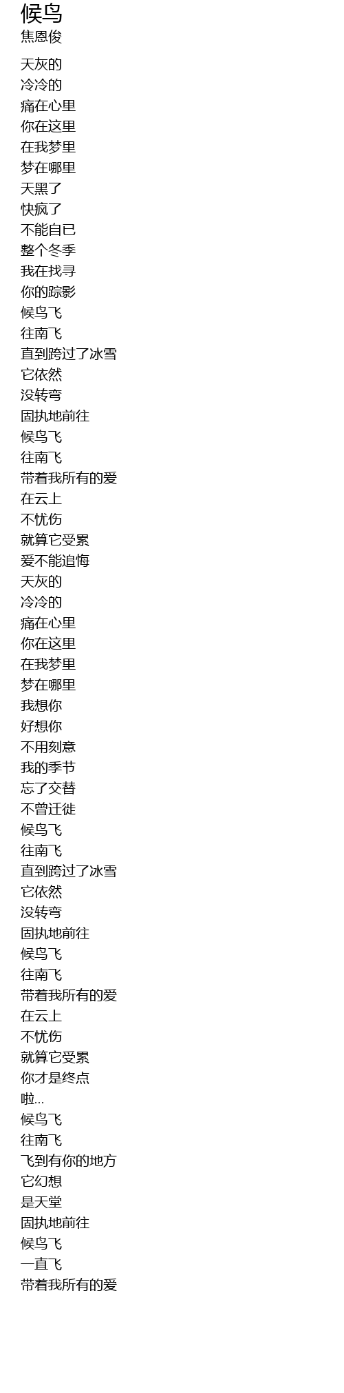 | [03:08.65] | 候鸟飞 |