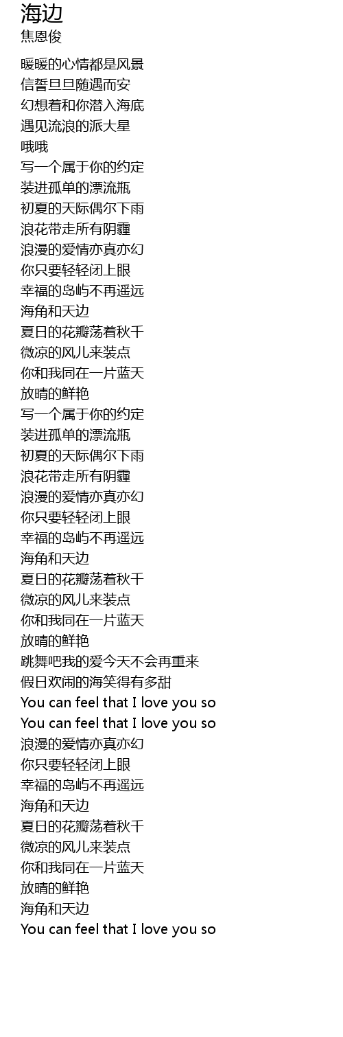 | [02:35.10] | hǎi jiǎo hé tiān biān |