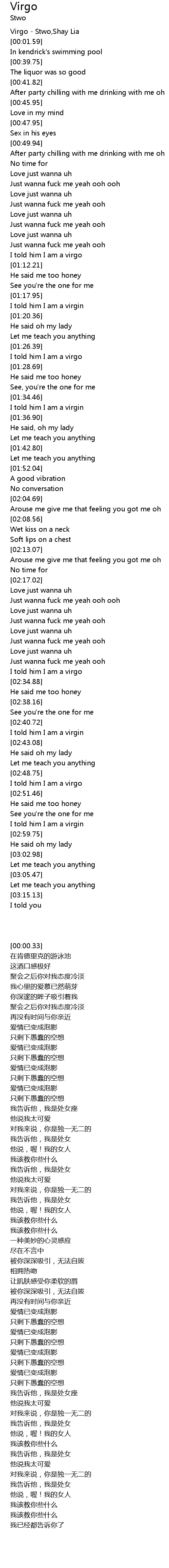 | [00:00.33] | Virgo - Stwo,Shay Lia |