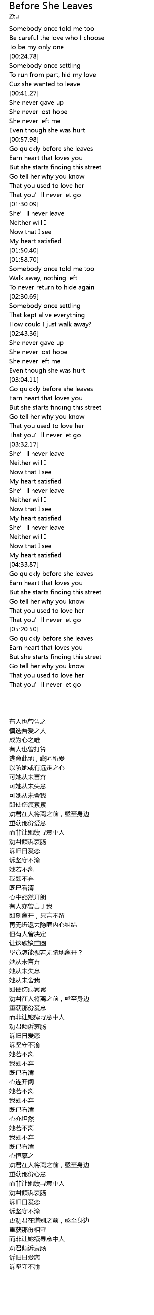 | [03:49.65] | She' ll never leave |