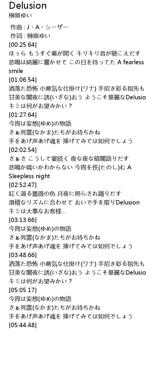 | [04:54.83] | 甘美な闇夜に誘(いざな)おう ようこそ華麗なDelusion |