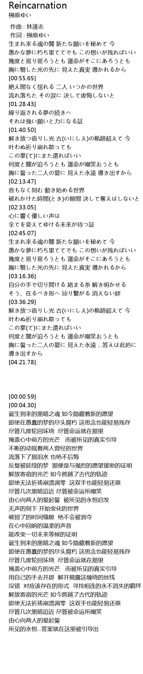 | [00:22.99] | 生まれ来る魂の闇 新たな願いを秘めて 今 |