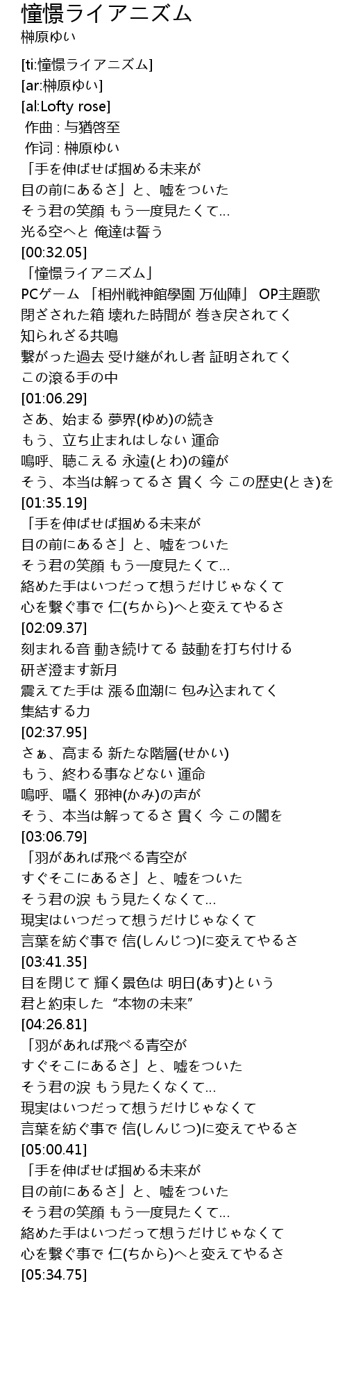 | [00:32.96] | 「憧憬ライアニズム」 |