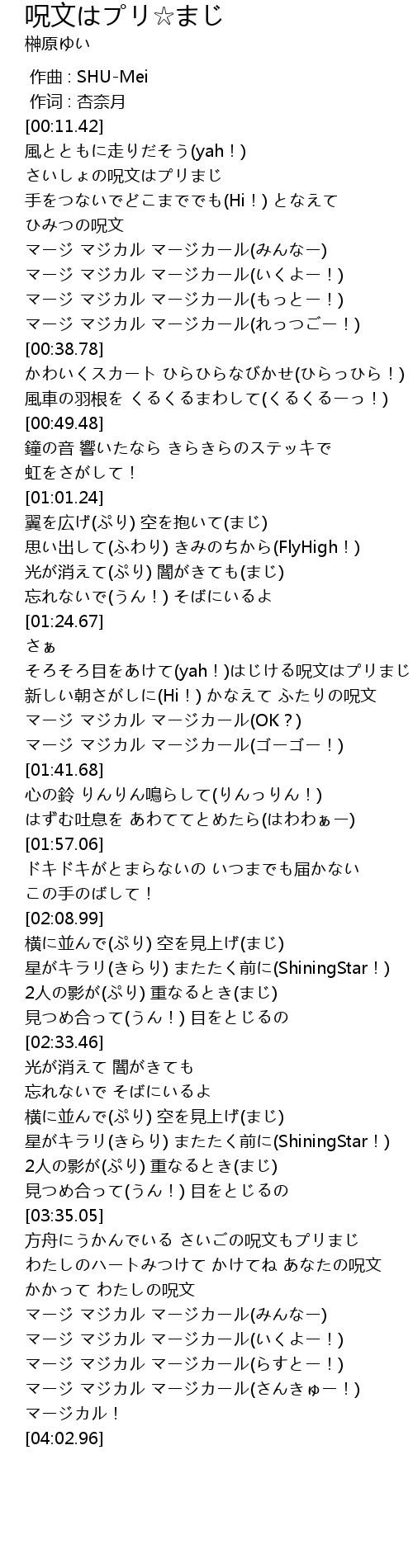 | [03:57.95] | マージ マジカル マージカール(さんきゅー!) |