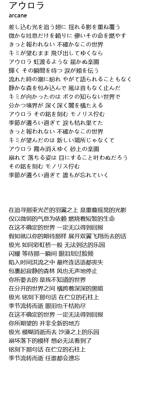 | [01:28] | アウロラ 虹渡るような 届かぬ楽園 |