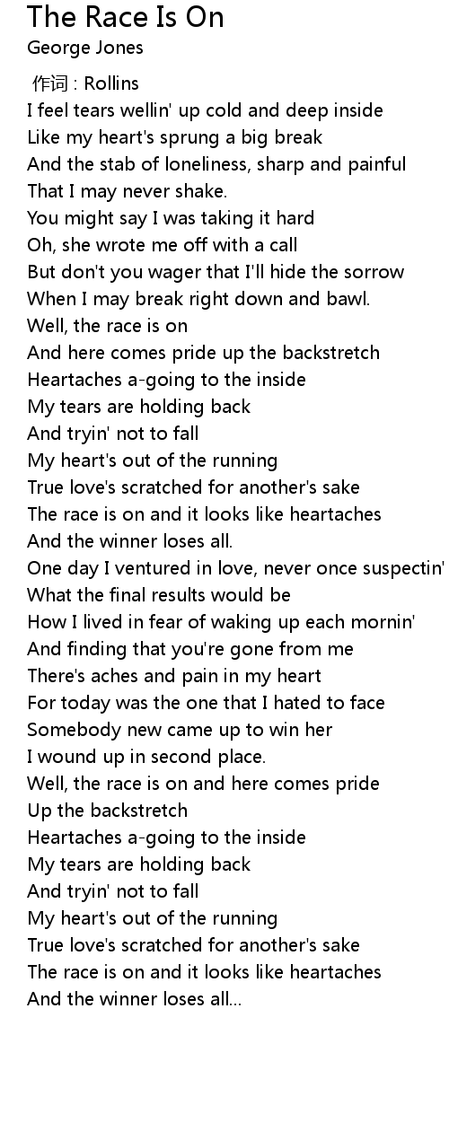 | [00:42.98] | The race is on and it looks like heartaches |