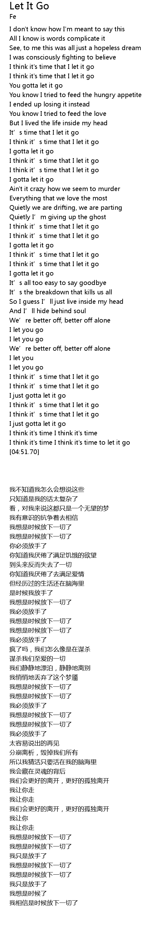 | [04:38.30] | I think it' s time I think it' s time to let it go |