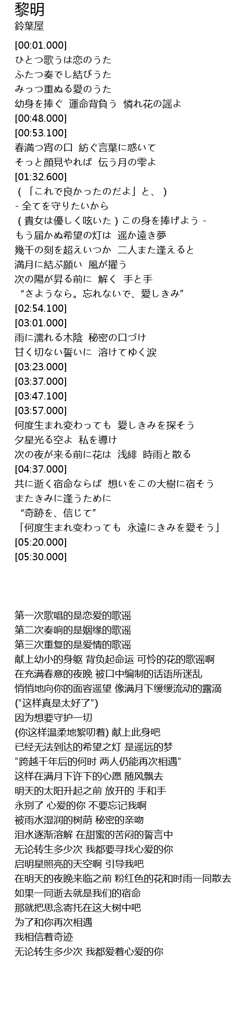 | [05:03.500] | 「何度生まれ变わっても 永遠にきみを愛そう」 |