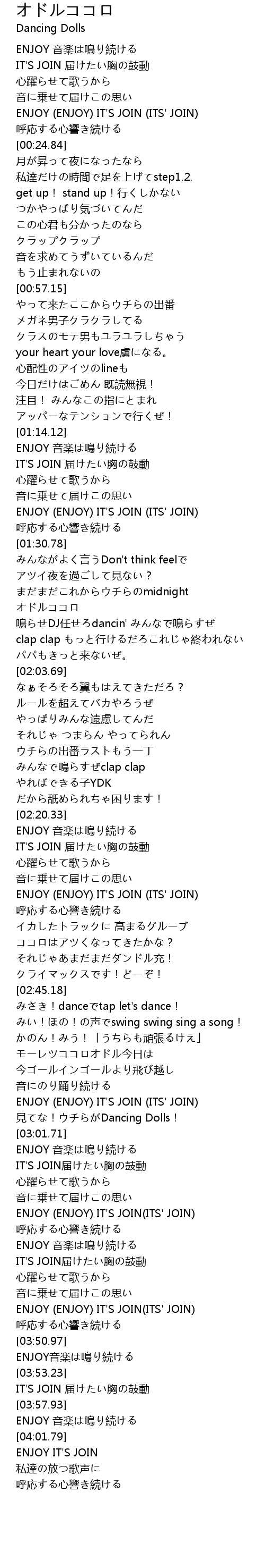 | [02:59.56] | 見てな!ウチらがDancing Dolls! |