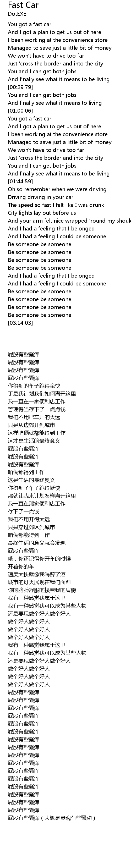 | [02:32.13] | The speed so fast I felt like I was drunk |