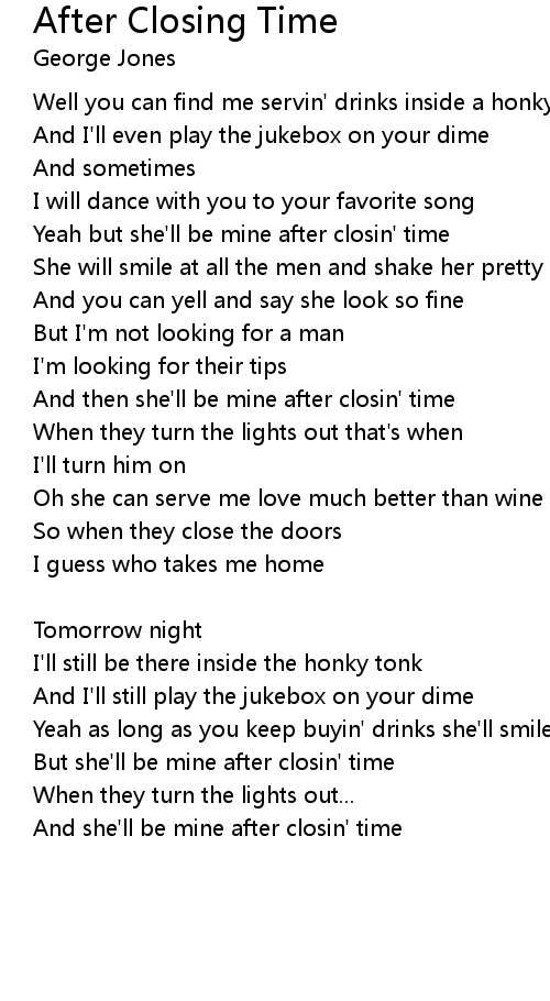 Yeah but she'll be mine after closin' time |