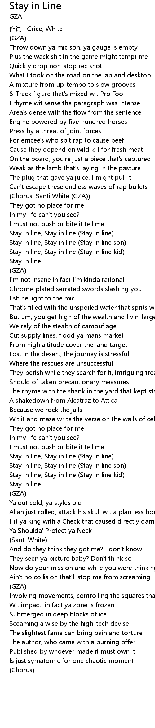 | Stay in line, Stay in line (Stay in line) | |