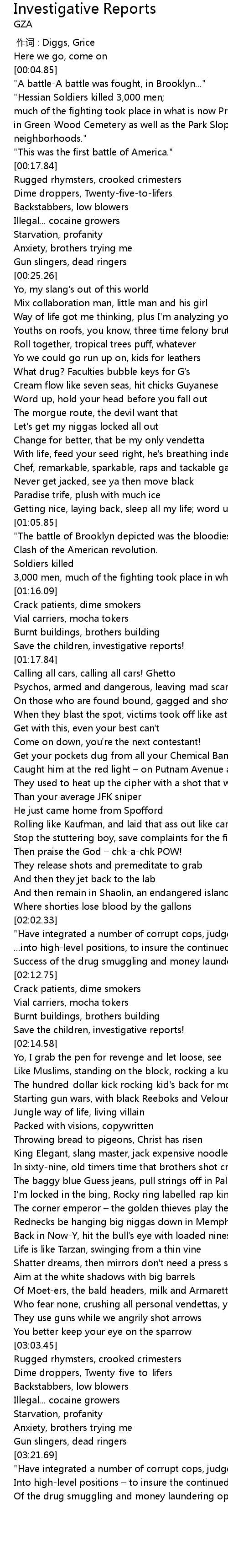 | [03:04.18] | Rugged rhymsters, crooked crimesters |