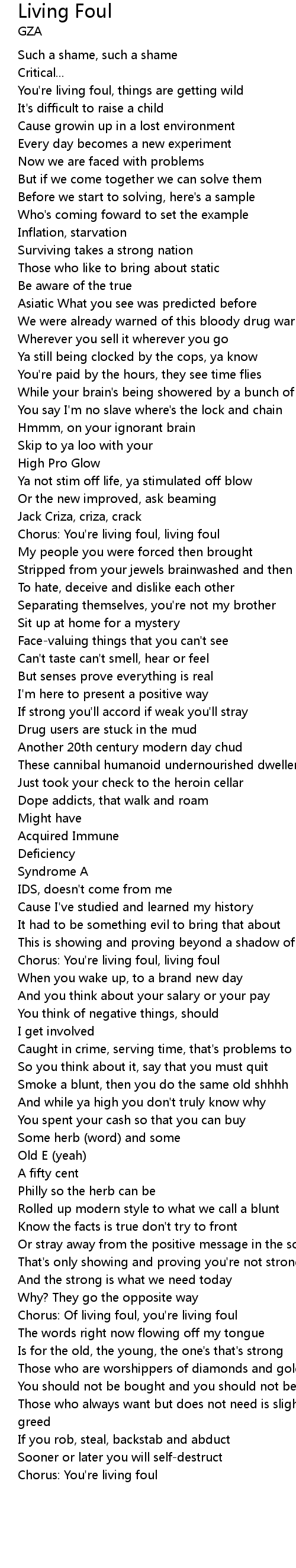 Chorus: Of living foul, you're living foul |