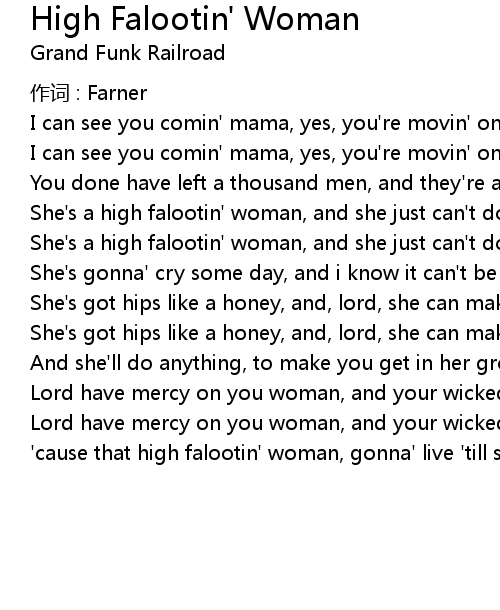 | She' s a high falootin' woman, and she just can' t do no wrong. | |