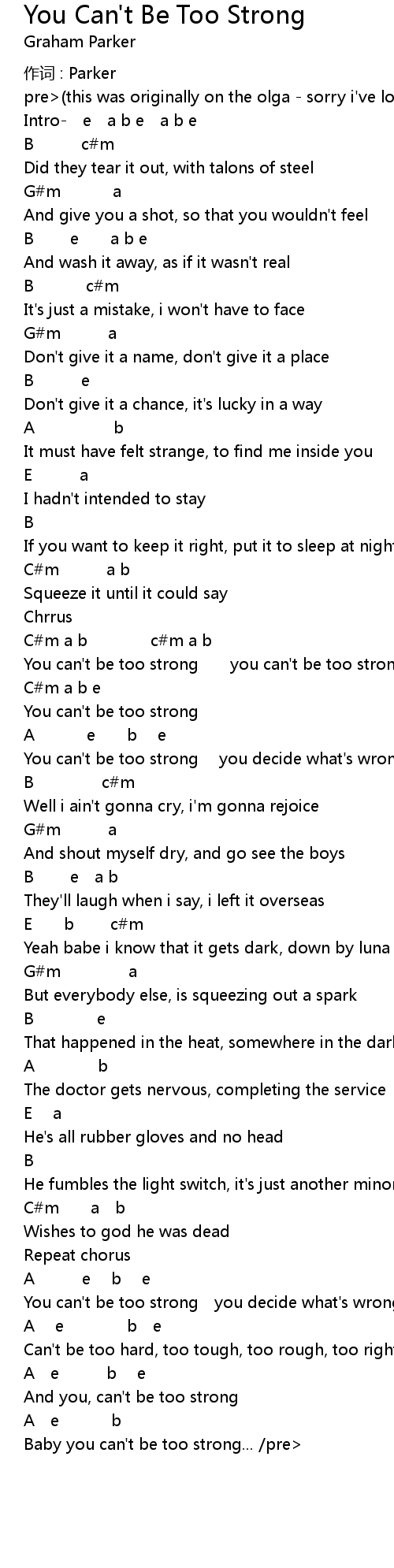 | Can' t be too hard, too tough, too rough, too right, too wrong | |