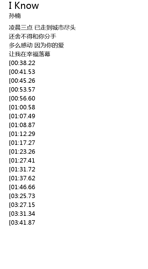 | [03:38.98][03:31.34] | Yes I Know I Know I Know |