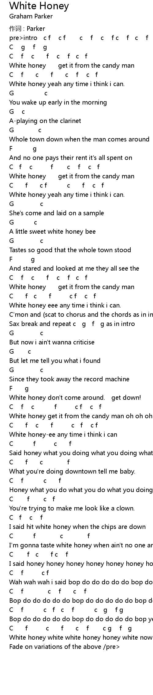 | White honey white white honey honey white now yeah yeah. | |