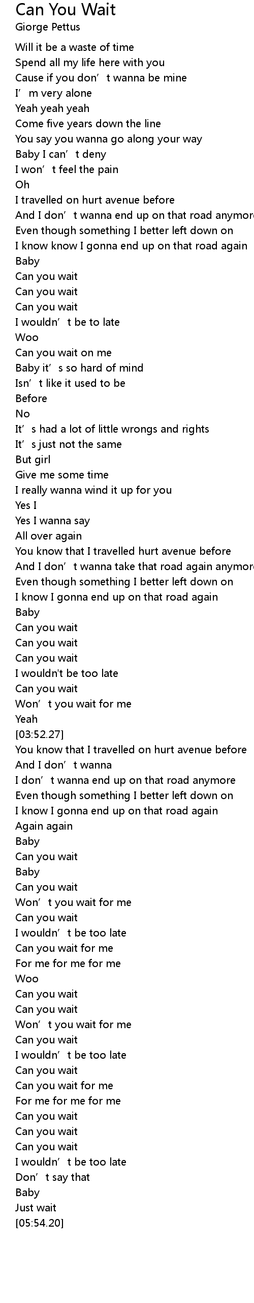 | [01:47.52] | Can you wait |
