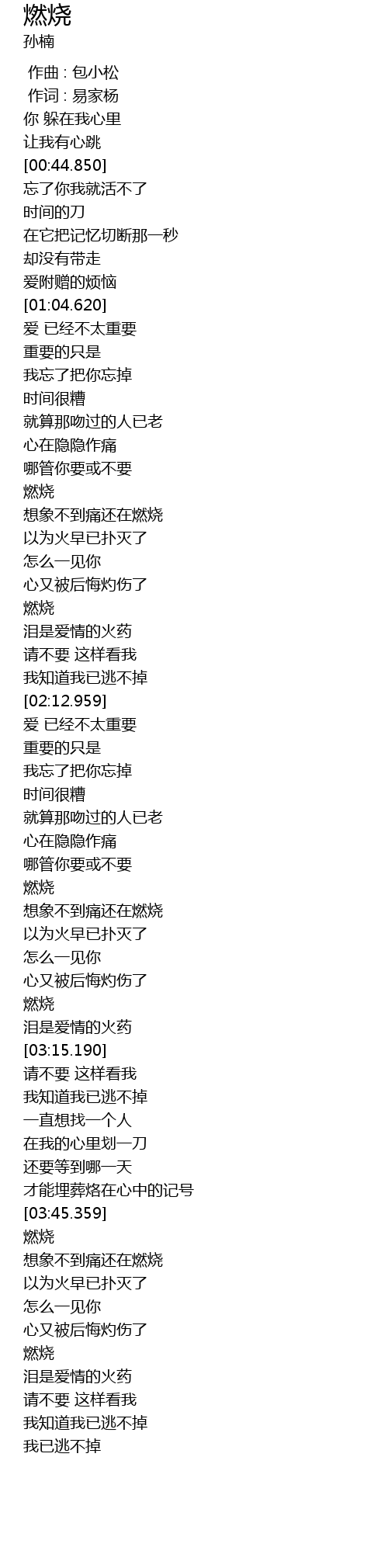 | [01:39.990] | xiang xiang bu dao tong hai zai ran shao |