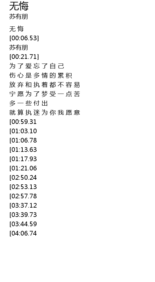 | [02:29.19][01:06.78] | 回 头 或 继 续 都 要 无 悔 |
