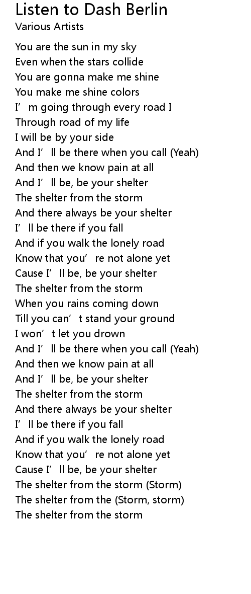 | [03:10.000] | The shelter from the storm Storm |