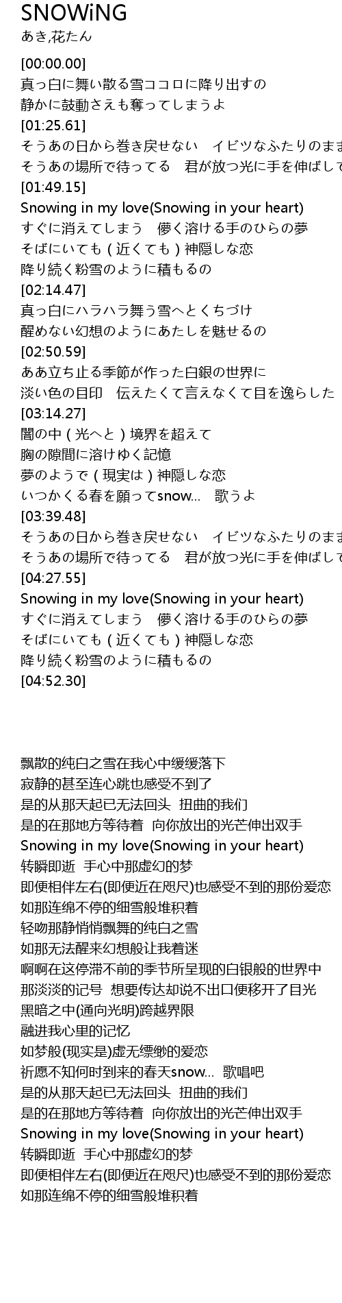 | [04:27.74] | Snowing in my love Snowing in your heart |