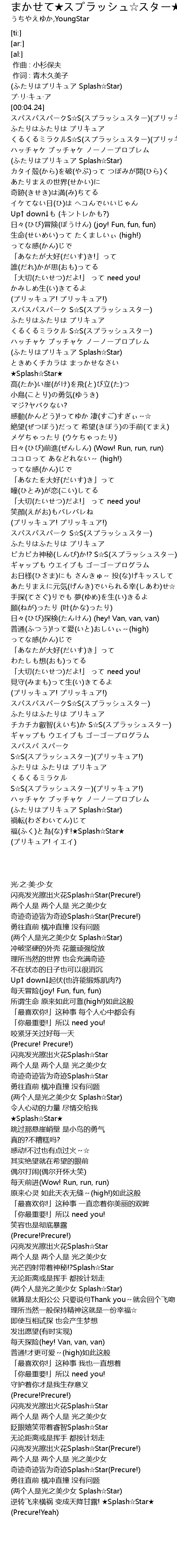 | [00:17.95] | (ふたりはプリキュア Splash☆Star) |