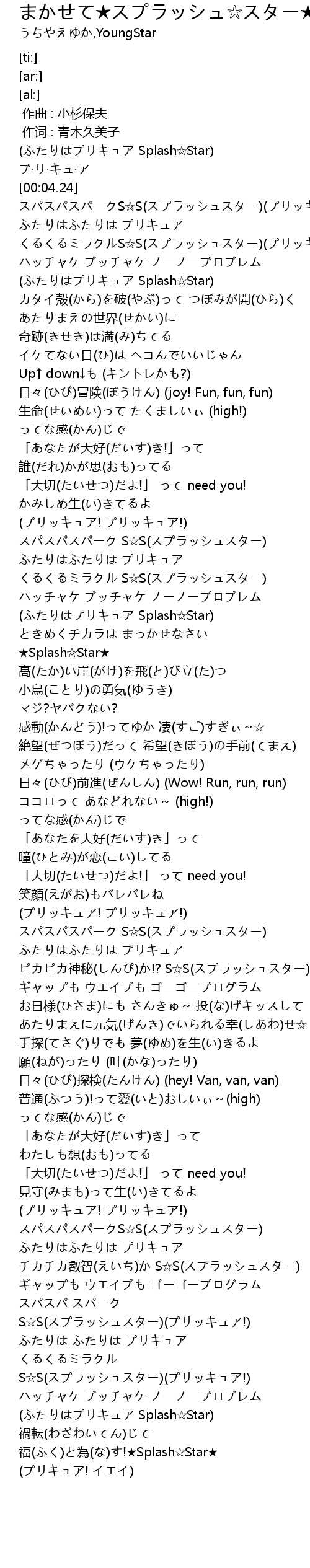 [00:06.71] スパスパスパークS☆S(スプラッシュスター)(プリッキュア!)