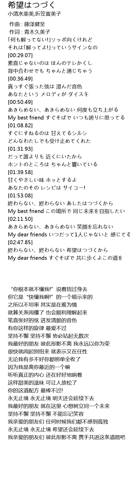 | [02:01.64] | My best friend この場所で 同じ未来を目指したい |