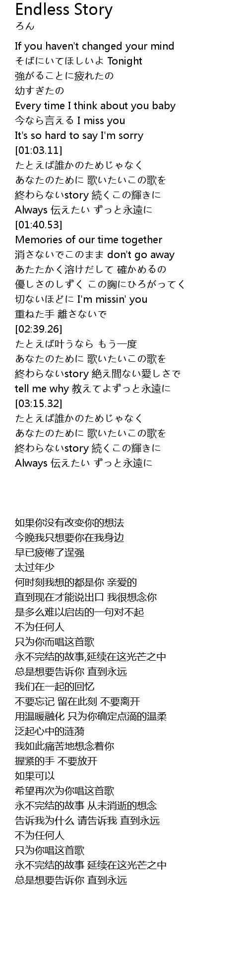 | [02:55.79] | 終わらないstory 絶え間ない愛しさで |
