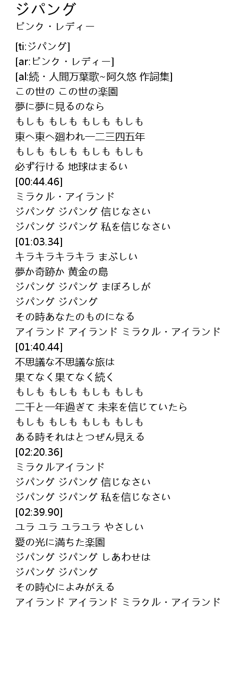 | [00:55.75] | ジパング ジパング 私を信じなさい |