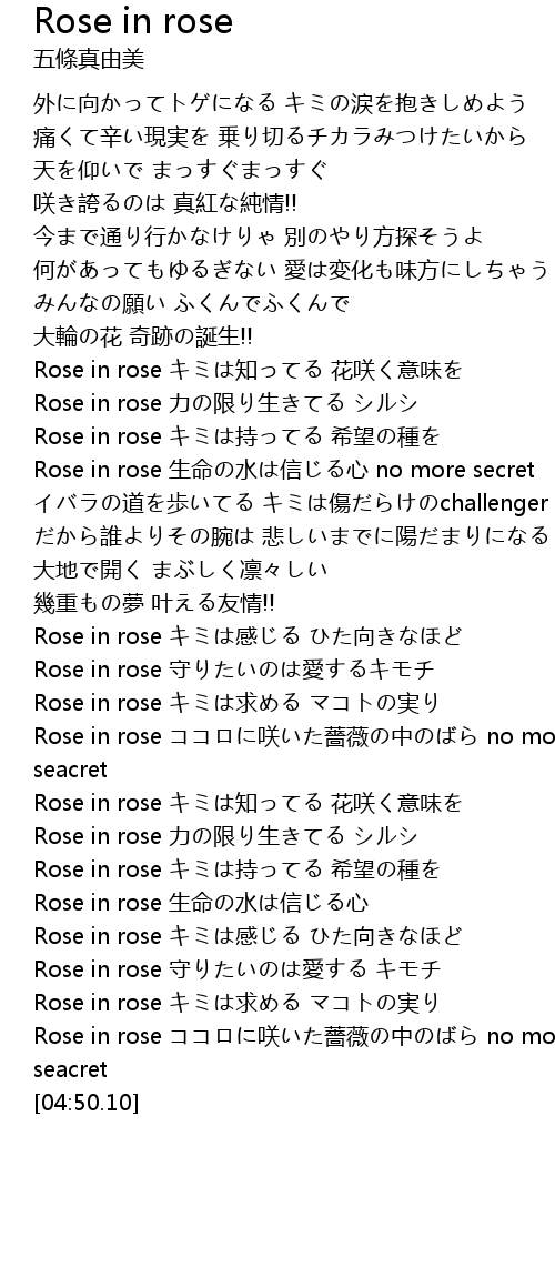 | [03:42.65] | Rose in rose キミは知ってる 花咲く意味を |