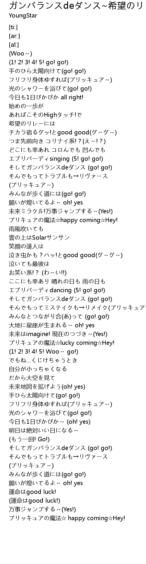 | [00:17.04] | フリフリ身体ゆすれば(プリッキュア~) |