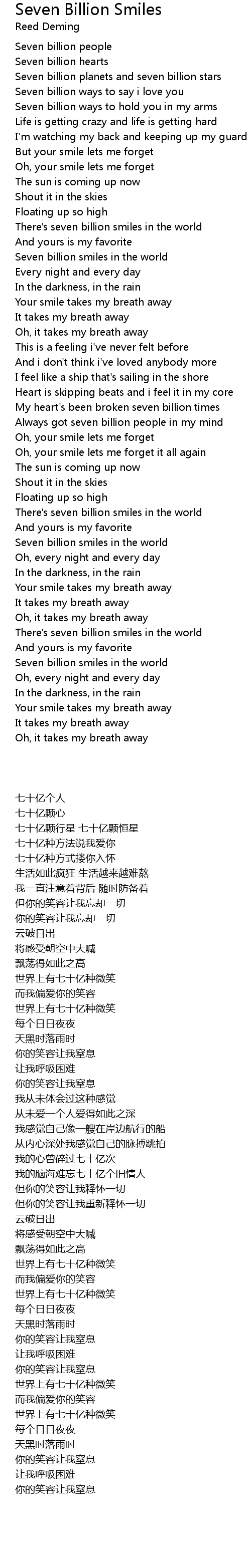 There's seven billion smiles in the world |