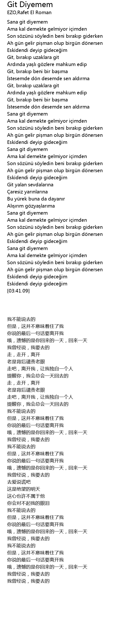 | [03:10.01] | Ama kal demekte gelmiyor içimden |