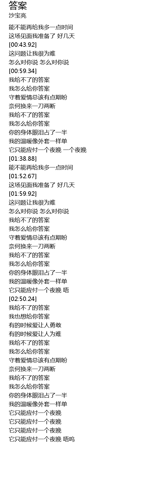 | [03:39.47] | wǒ gěi bù liǎo de dá àn |