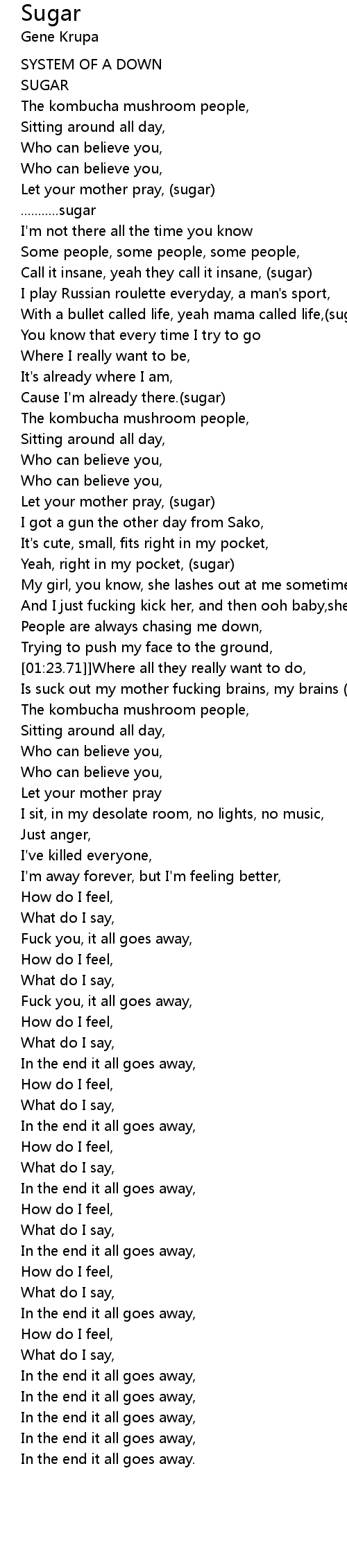 And I just fucking kick her, and then ooh baby,she's O.K.(sugar) |