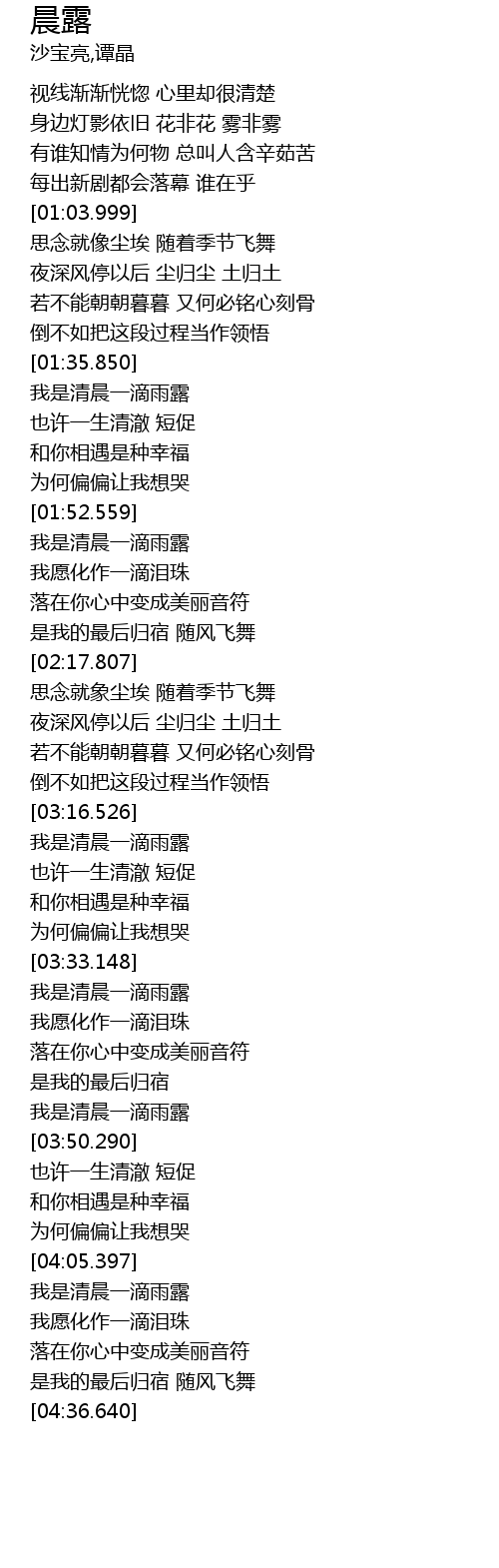 | [03:16.937] | wǒ shì qīng chén yī dī yǔ lù |