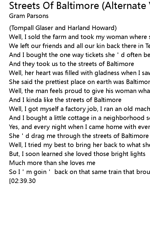 | [01:04.40] | And I kinda like the streets of Baltimore |