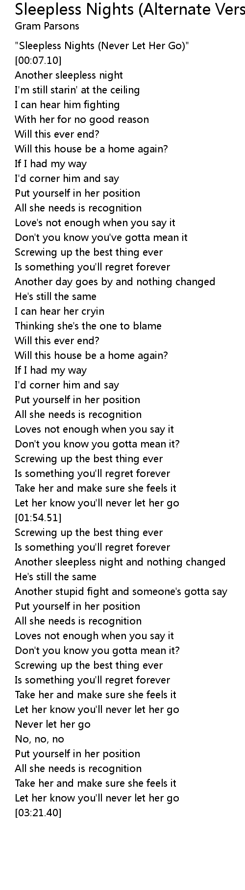 "Sleepless Nights (Never Let Her Go)" |