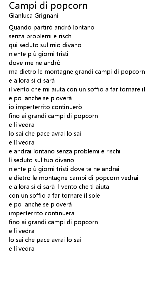 | e dietro le montagne campi di popcorn vedrai | |