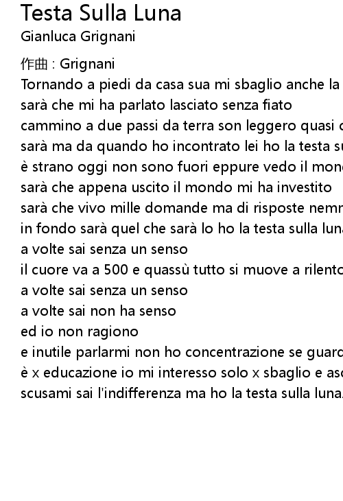 | in fondo sarà quel che sarà lo ho la testa sulla luna | |