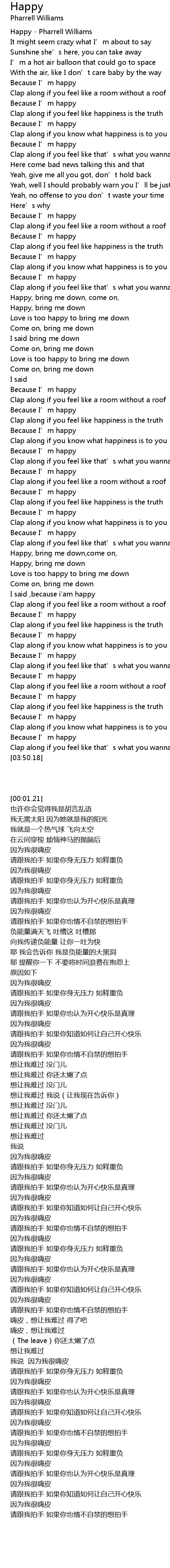 | [03:32.45] | Clap along if you feel like happiness is the truth |