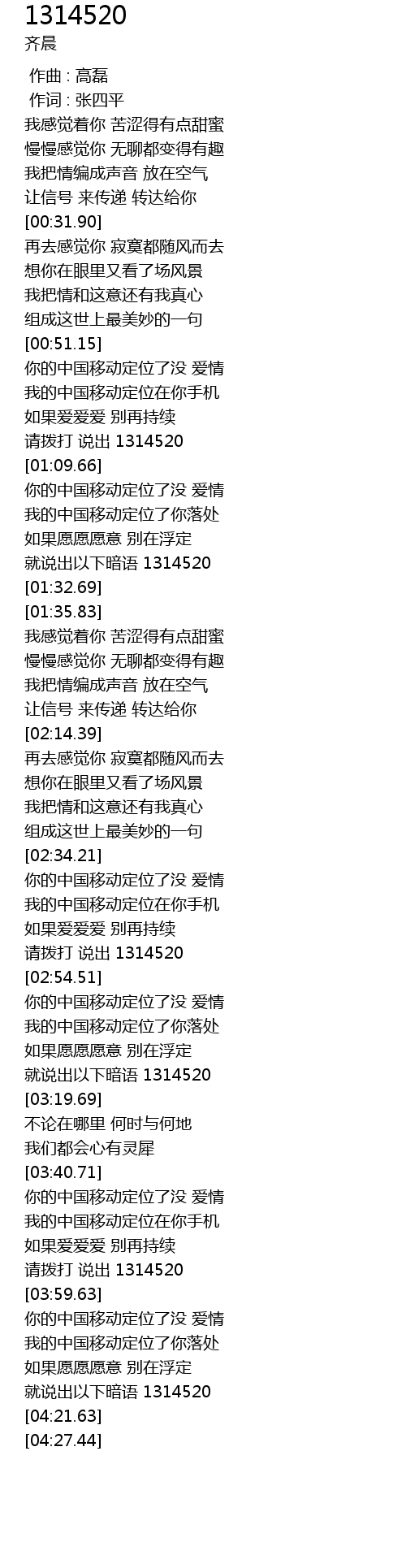 | [04:14.00] | 就说出以下暗语 1314520 |