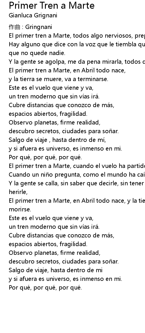 | El primer tren a Marte, en Abril todo nace, y la tierra está lejos, y va a morirse. | |